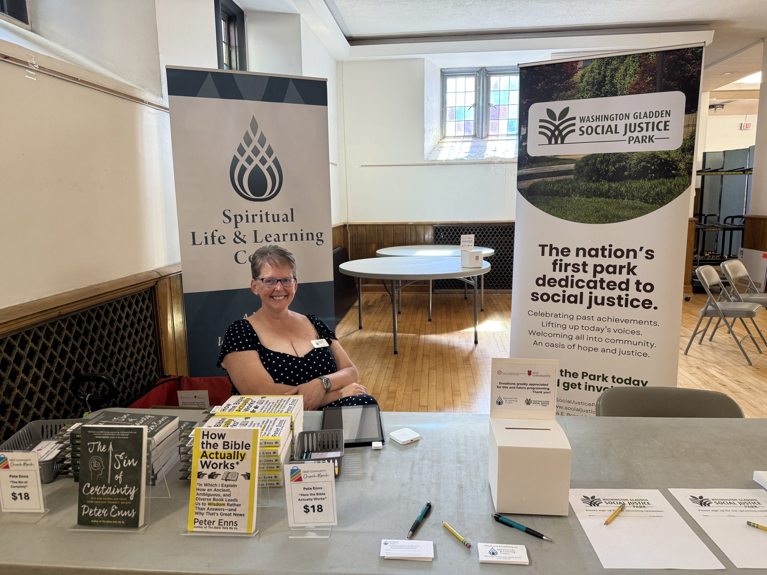 More than 150 people joined us for this year’s Washington Gladden Lecture, cohosted with First Congregational Church, First Community Church, and the Spiritual Life & Learning Center. Renowned theologian, author, and podcaster Pete Enns inspired a Chautauqua-style afternoon of thoughtful conversation on faith, meaning, and social justice. The event included an engaging Q&A session and a book signing held in the park, bringing people together in true community spirit.