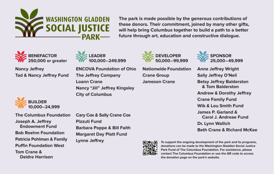 To provide for the ongoing maintenance of the park and its plantings, a special endowment has been established through a major gift of the Tad and Nancy Jeffrey Fund of the Columbus Foundation. This gift honors Nancy Jeffrey who served as the park’s lead benefactor and whose early support and guidance led to its development.